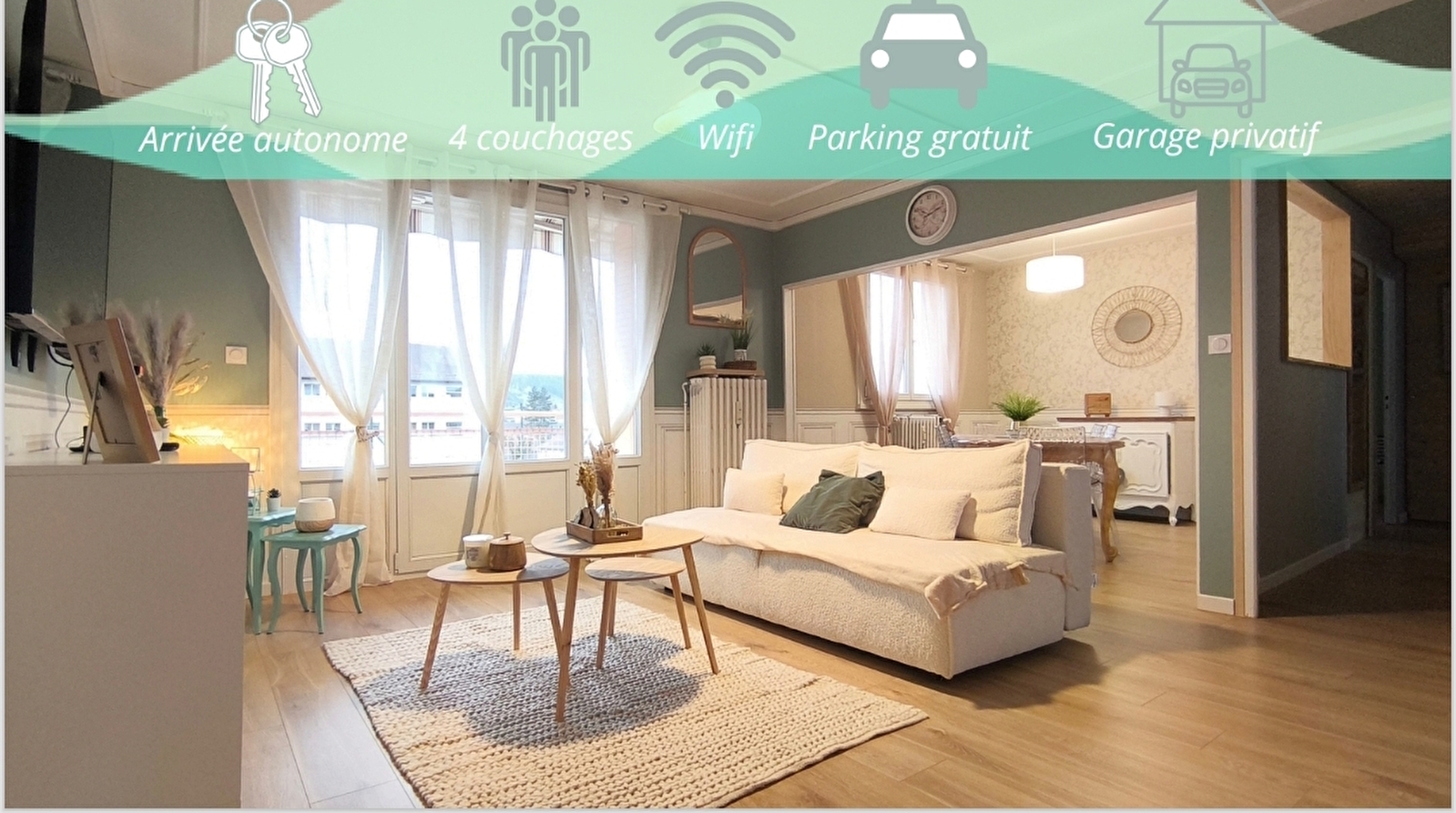 Appartement 70m2 rénové à neuf, élégant et très bien équipé, situé à Pontarlier au cœur du Haut-Doubs.