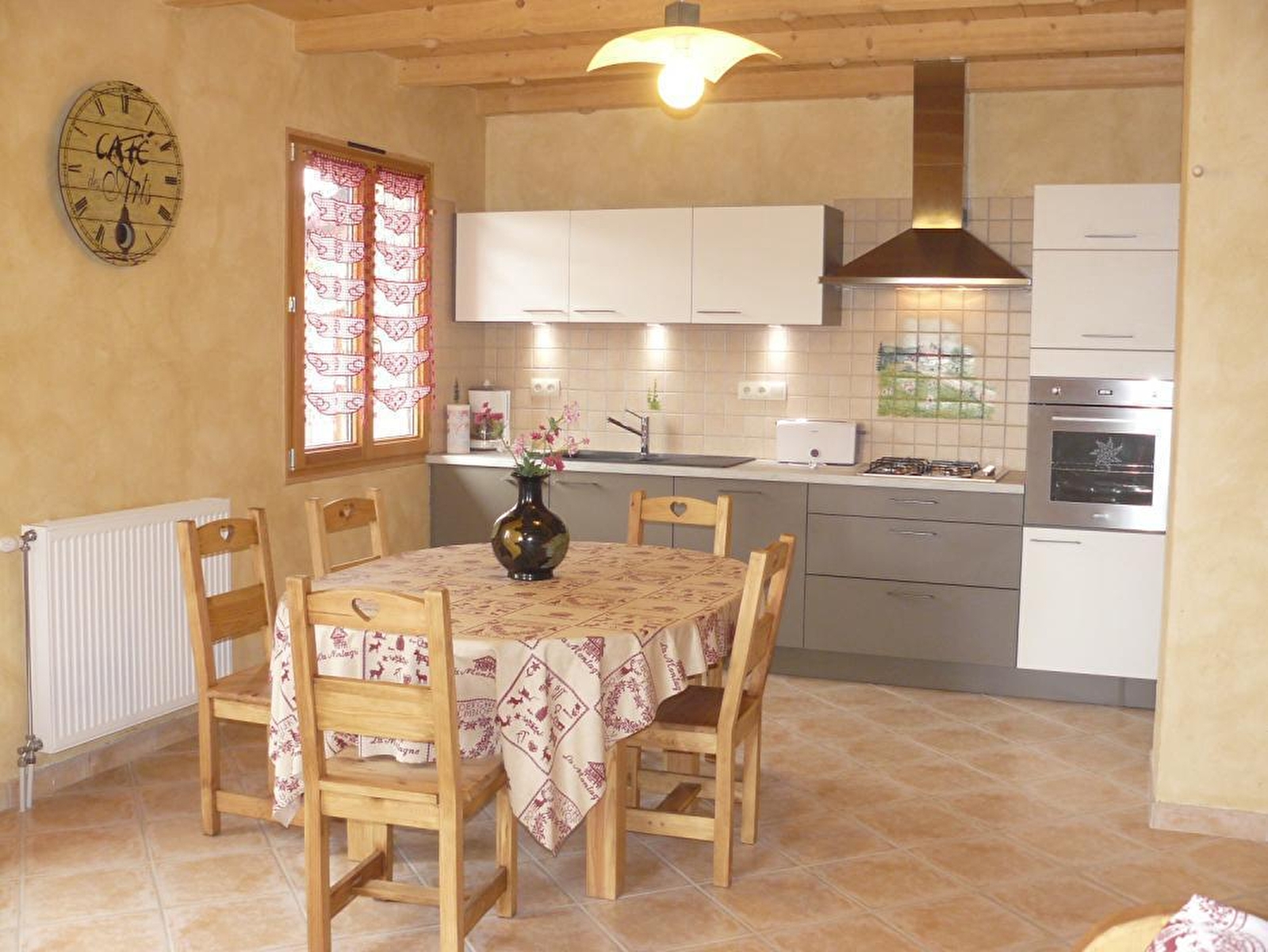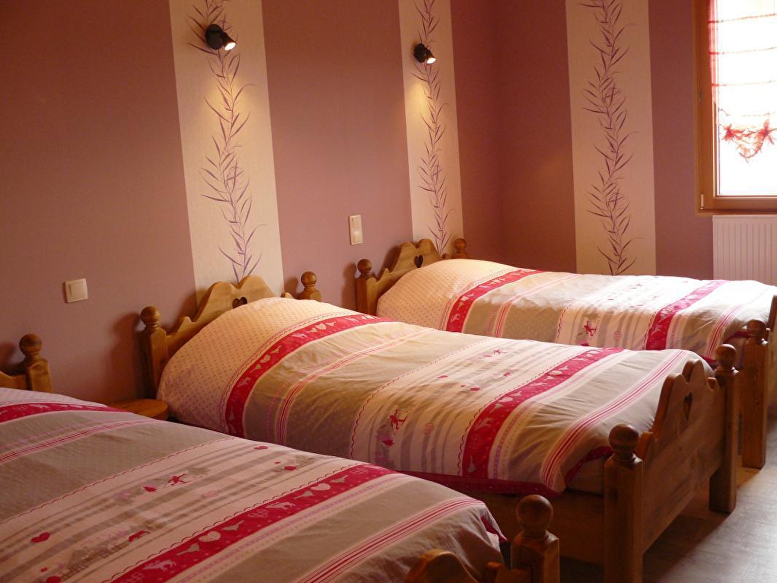Au coeur du village, ancienne ferme entièrement rénovée composée de plusieurs gîtes. Au rez de chaussé, local à skis ou à vélos. Le gîte se situe au 1er étage avec : cuisine entièrement équipée et ouverte sur le séjour-salon (poêle à granulés), CH1: 1 lit 2 pl, CH2: 3 lits 1 pl, salle d'eau avec douche multi-jet (sèche-cheveux), jeux de lumière et radio intégrée, wc indépendants. Balcon avec petit salon de jardin. Terrain attenant non clos en commun avec les autres gîtes, salon de jardin et barbecue. Interphone et digicode. ACCES WIFI SECURISE GRATUIT. Granulés fournis gratuitement. Parking privé sur place et volets dans les chambres.
