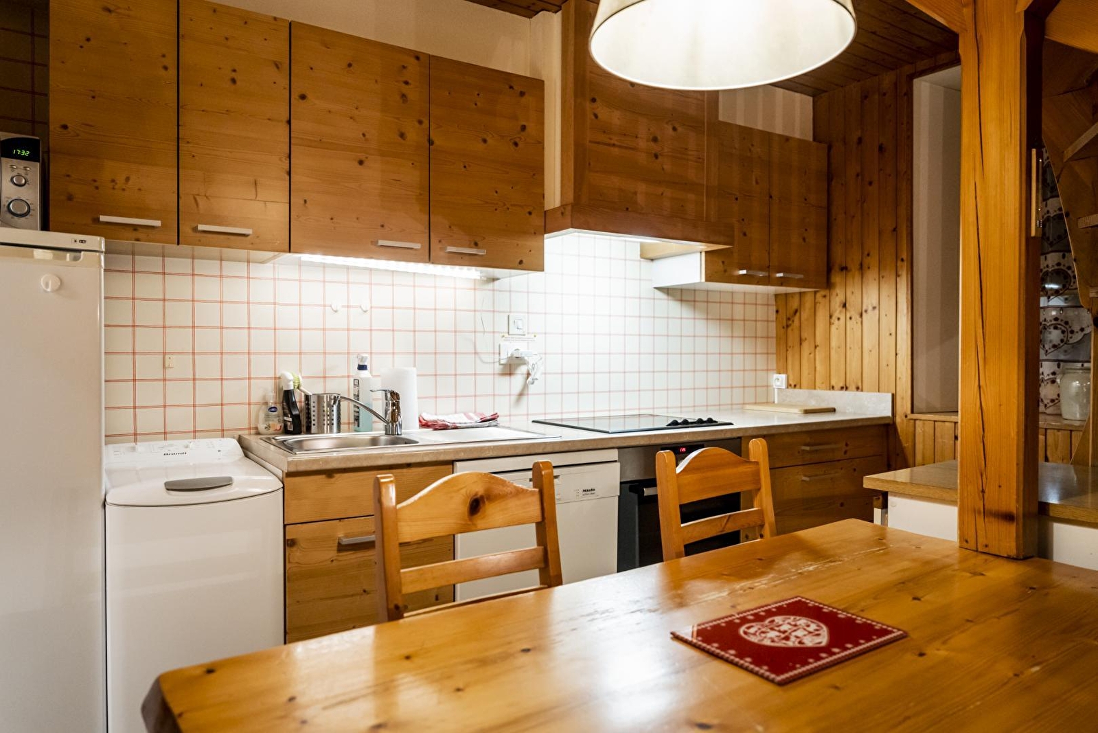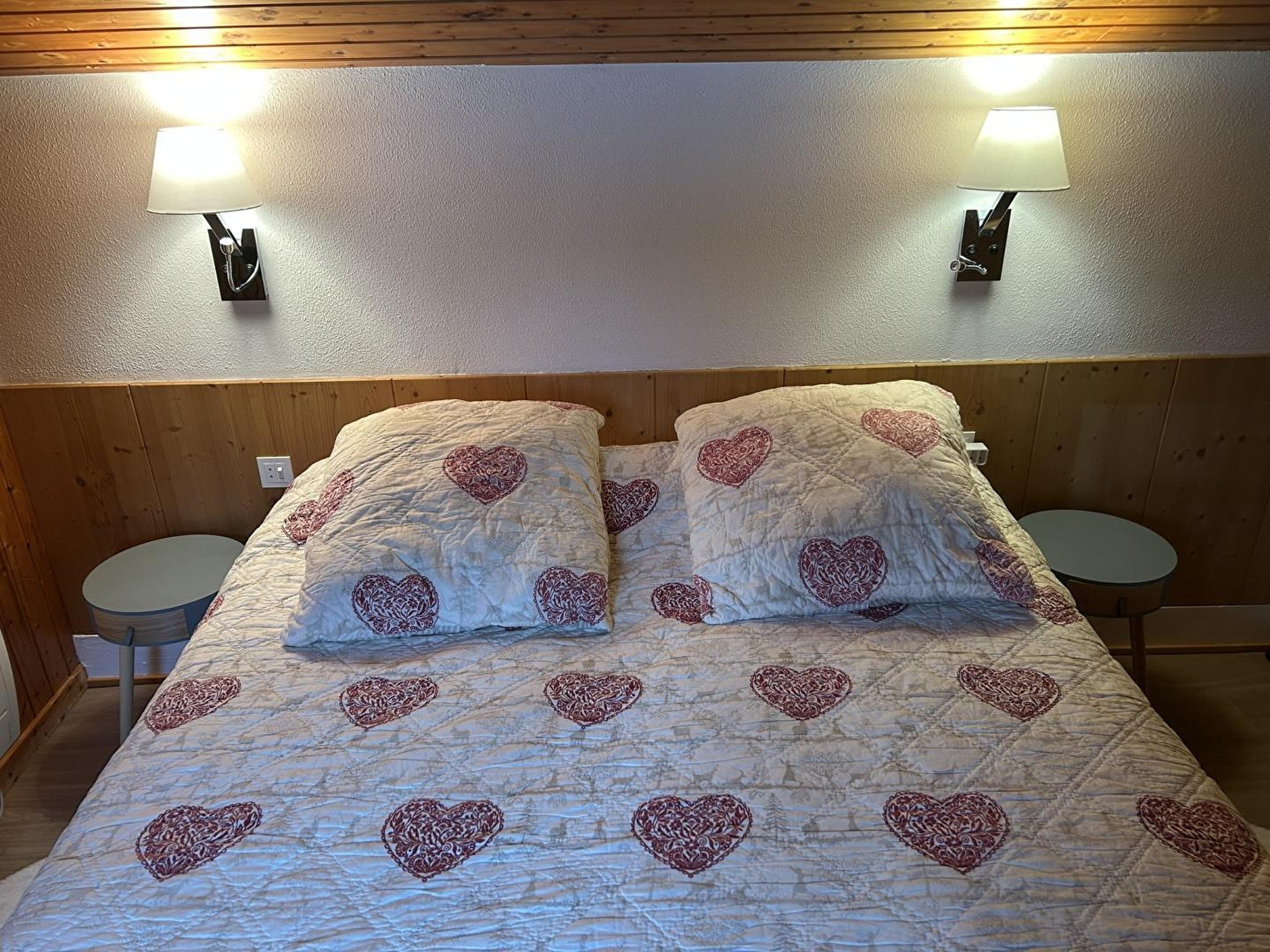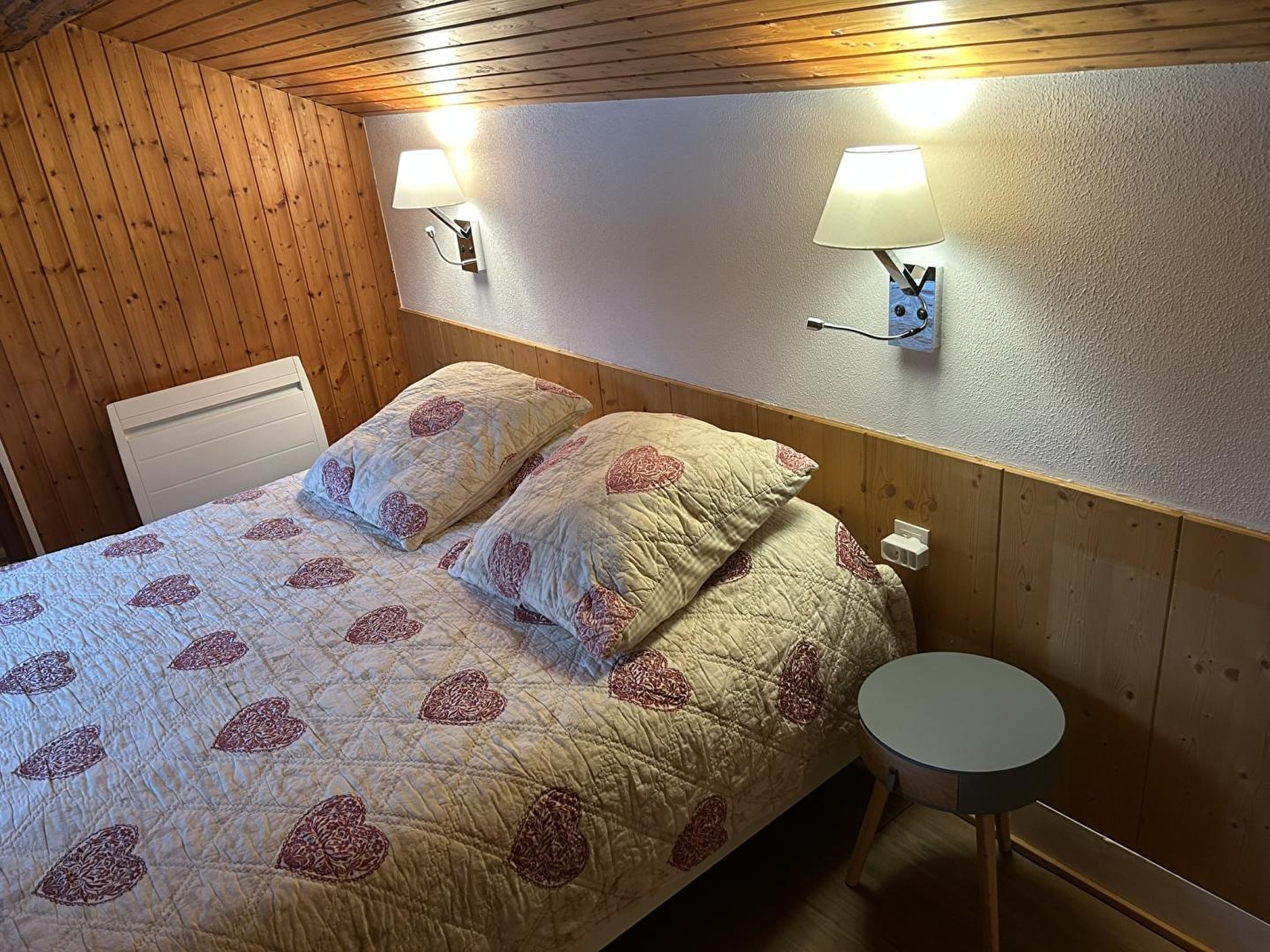 Maison mitoyenne. Au RDC: séjour avec un canapé lit (140), coin-cuisine (avec appareils à raclette et à fondue), salle d'eau, wc indépendants. A l'étage: ch1:1 lit 2 places de 160. Terrasse, terrain attenant non clos en commun avec 2 autres gîtes, salon de jardin, barbecue, parking privé déneigé. Chauffage électrique. Toutes charges comprises en été.