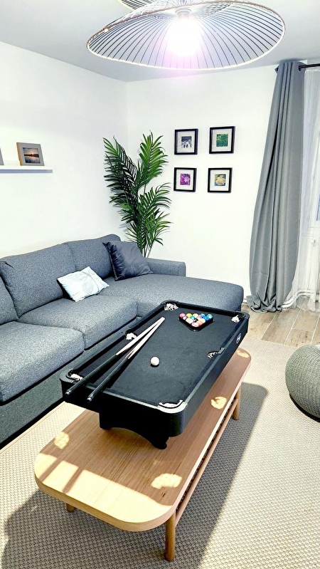 Séjournez en Famille ou entre Amis, le temps d'un week-end ou pour les vacances dans une maison agréable située au cœur du Jura, dans le petit village de Plasne perché à 600m d'Altitude et à 5km de Poligny. Cette maison vous offre 180m2 de confort et de détente afin de profiter petits et grands. Vous trouverez : au rez-de-chaussée : une entrée, une buanderie, une spacieuse cuisine équipée, un salon-télé, une salle à manger, un espace jeux d'arcade et baby-foot, une salle de douche et toilette séparé ; Et à l'étage : 4 chambres (deux avec lit de 160x200cm; une avec deux lits simples 90x200cm et une avec deux lits superposés pour les enfants); une salle de bain et douche, un wc séparé. Vous profiterez également d'une belle terrasse aménagée donnant sur le jardin privatif de 1000m2. Barbecue, transat, parasol et table de ping-pong à disposition. Nombreux chemins de randonnées, cascades, fromagerie à proximité. Région des Lacs: Clairvaux, Chalain, Vouglans. Ville à Proximité: Poligny, Arbois, Salins-les bains, Lons-le-Saunier, Voiteur, Château-chalon, Champagnole Pistes de skis à : à moins d'une heure. Borne de recharge électrique sur place.