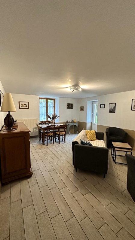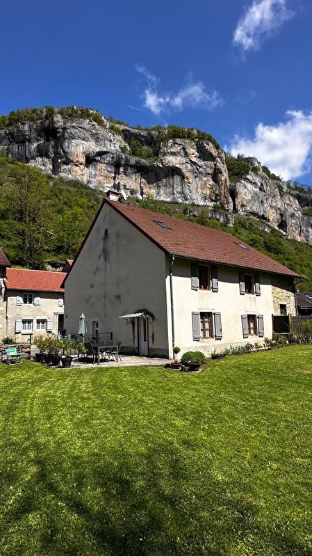Maison indépendante située à l'entrée de Baume, classé plus beau village de France, blotti au cœur de la reculée (profonde vallée creusée dans le plateau calcaire). Au rez de chaussée, cuisine, salon-séjour, salle d'eau, wc indépendant. A l'étage: ch1: 1 lit 2 pl en 160, ch2: 1 lit 2 pl en 140, ch3: 2 lits 1 pl., wc indépendant.Chauffage central, cour-parking, terrain attenant clos, salon de jardin, barbecue. Toutes charges comprises. Les linges de toilettes ne sont pas fournis.Les animaux sont interdits à l'étage.