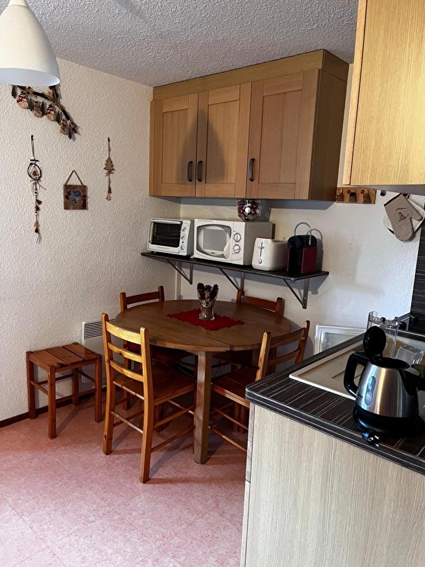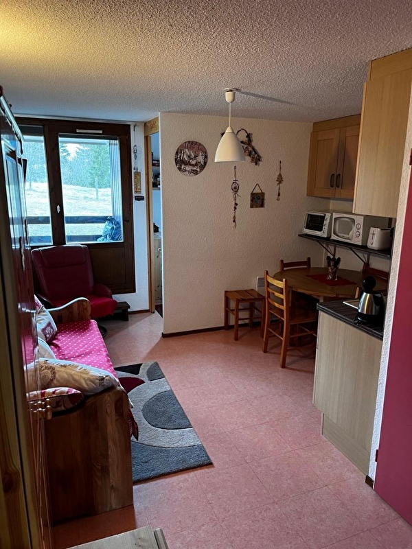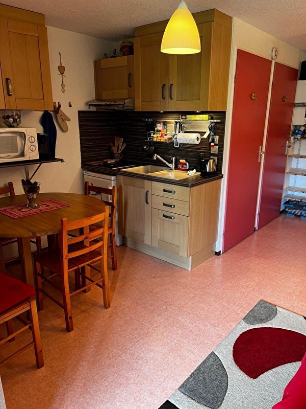 Ce studio situé en rez-de-chaussée dans une résidence au calme, à 900 mètres du centre-ville se compose d'une d'une pièce de vie avec kitchenette et canapé convertible pour une personne avec TV écran plat, d'un coin montagne avec 1 lit double (140*190), d'une salle de bains avec baignoire, et d'un WC indépendant. Côté extérieur, vous pourrez profiter d'une terrasse privative de 5m², aménagée avec un salon de jardin. Chèque de 80 € pour la caution ménage. Laverie automatique située à 300 mètres sur le parking d'Intermarché. Navette Skibus à 300 mètres desservant les postes de ski de descente. Le studio dispose d'1 place de parking couverte privative. Possibilité de place de parking extérieur commun en fonction des places disponibles Local pour ranger vélo/ski est commun avec un casier ski privatif