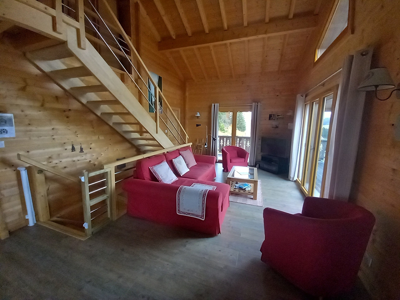 Découvrez ce magnifique chalet indépendant et lumineux. Pour accéder au chalet, 42 marches à monter, ce bel hébergement se mérite ! Au rez-de-chaussée, entrée avec baie vitrée où vous trouverez tout le nécessaire pour déposer vestes et chaussures, cette pièce sert également de couloir pour accéder aux chambres et à la salle d'eau. La première chambre est équipée d'un lit 160*200. La seconde dispose de 2 lits superposés (4 x 90) avec un bureau et une bibliothèque. Retrouvez la salle d'eau avec une douche grande dimension et un lave-linge., WC indépendant. Au premier étage, profitez d'un très grand séjour avec cuisine toute équipée, espace salle à manger et coin salon avec canapé et TV . Depuis le séjour, profitez d'un grand balcon de 30 m² où vous pourrez admirer la vue imprenable et panoramique. Le jardin est attenant au balcon, il est en partie clos et vous disposerez d'un salon de jardin et d'un barbecue. Au second étage, une mezzanine équipée de 2 lits de 80 (pouvant faire un lit en 160) avec coin bibliothèque (livres et jeux de société). Idéalement situé : ski de fond derrière la maison, les pistes tracées sont à moins de 800m, à 100m de la Grande Traversée du Jura, à 400m : activité de chiens de traîneau, face au chalet : pentes de luge. A 3 km, partez à la découverte du village de Lajoux où se trouve le Parc Naturel du Haut-Jura avec une salle dédié aux visites, il y a également une fruitière, un bureau de poste, un commerce de matériel de ski ( vente et location) . A 5 km, à Lamoura (village touristique) retrouvez, restaurants, Office du Tourisme, musée du lapidaire et le Lac de Lamoura. A 6 km, au centre de Septmoncel, un boulanger et épicerie. Forfait électricité : 340 kwh en hiver et 170 kwh en été - dépassement à en sus à régler sur place