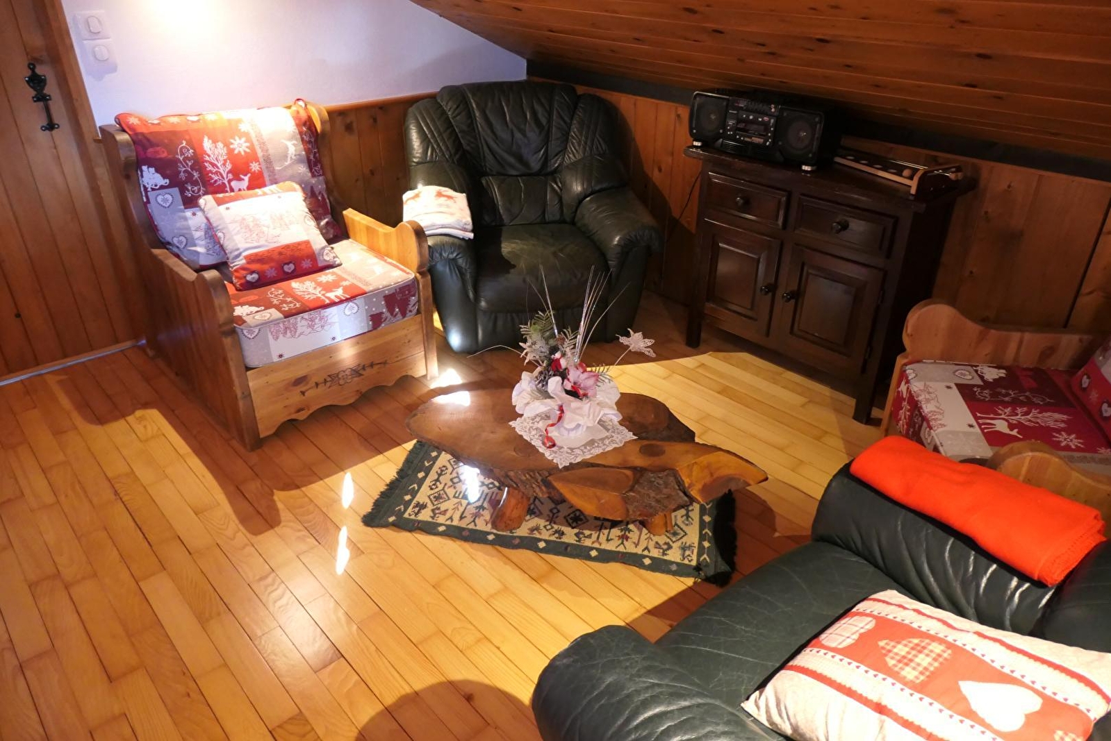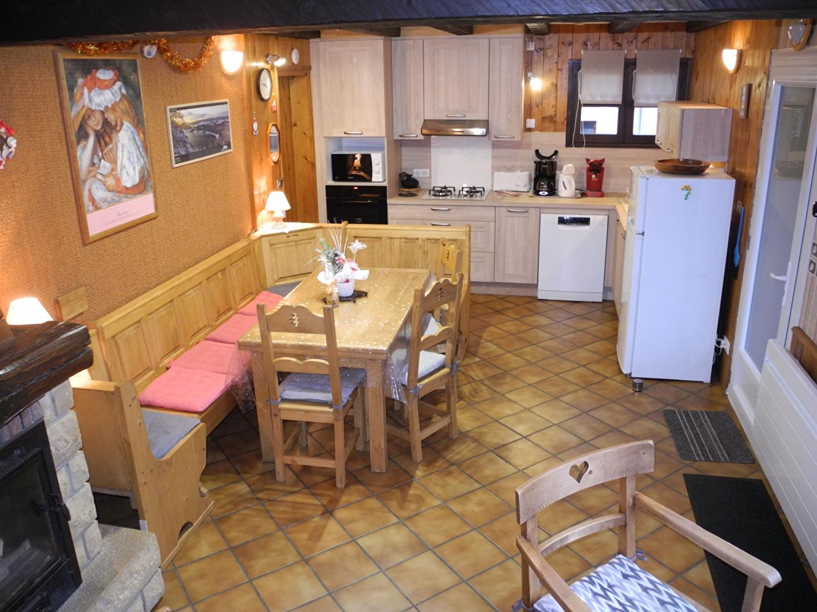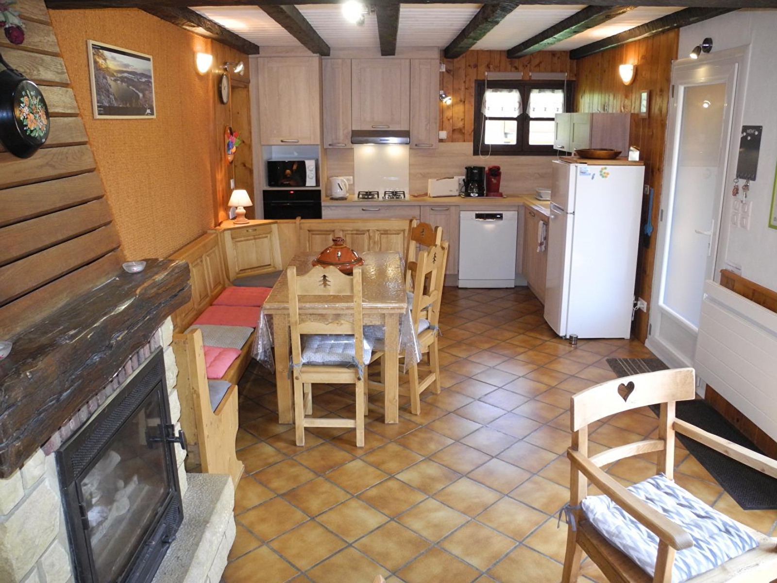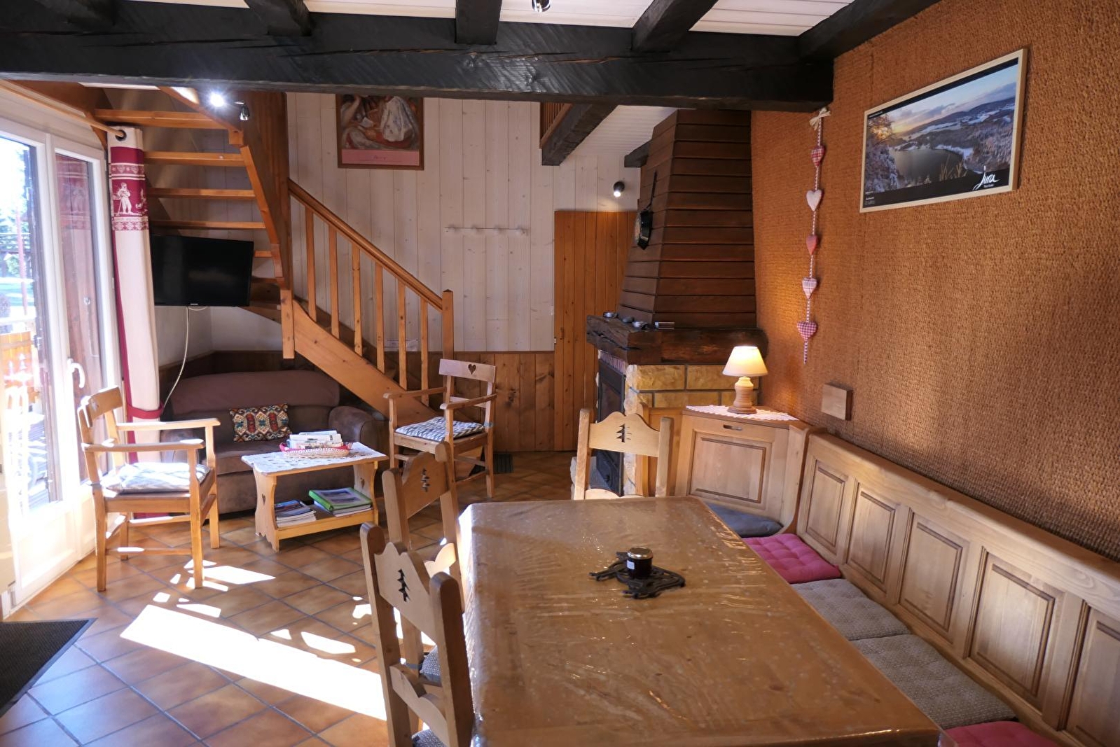 Chalet indépendant situé dans le Haut Jura et à proximité du Doubs. Accès sur une terrasse au sud avec Store Électrique et télécommande, salon de jardin, barbecue. Pièce à vivre avec espace salon, cheminée, coin repas et cuisine intégrée (lave-vaisselle, four micro-onde, appareil à raclette-fondue, grille-pain, batteur, cafetière, bouilloire électrique, TV, lave-linge, équipement bébé (lit, chaise haute et baignoire). 2 chambres avec chacune 1 lit 2 place en 140x190, salle d'eau, 1 wc indépendant. A l'étage : mezzanine avec petit coin salon et portillon sécurité enfant en haut de l'escalier, 3ème chambre avec 1 lit 2 places (140x190) et 1 lit 1 place (90x190). Terrain attenant non clos. Chauffage électrique et bois. Charges non comprises. Activités sportives : Accrobranches, Parcours acrobatique dans les arbres. Composteur à disposition
