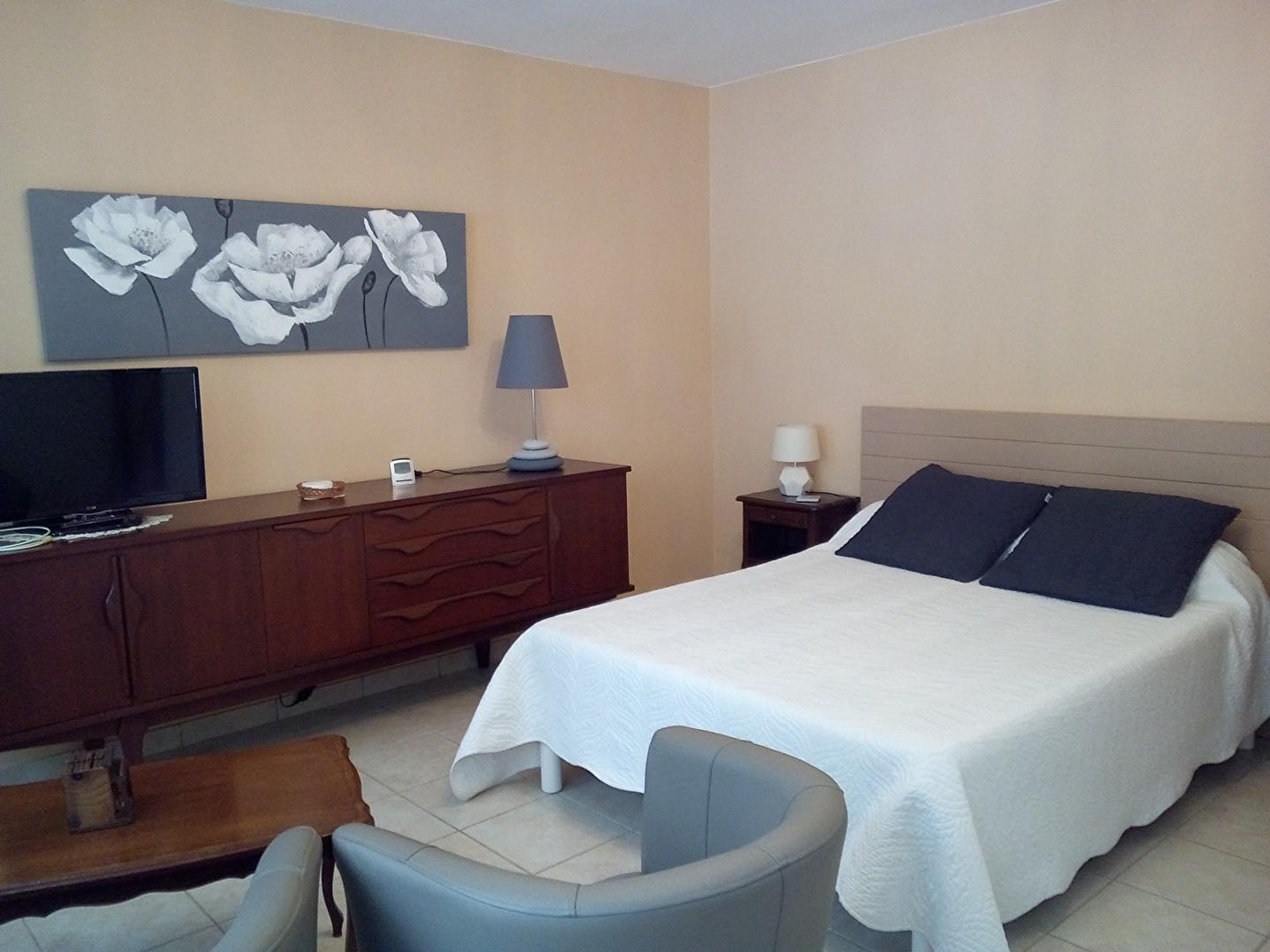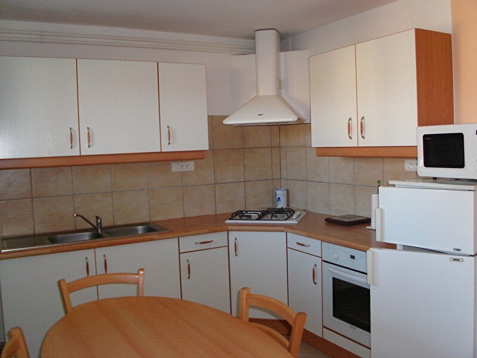 Logement au rez de chaussée de la maison des propriétaires. Cuisine, 1 chambre avec 1 lit 2 pl et 1 lit 1 pl, salle d'eau avec wc, lave linge, terrain attenant non clos, cour, salon de jardin. Chauffage central. Parking privé sur place.