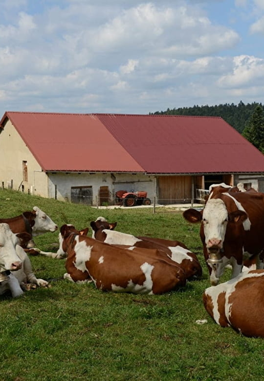 Comme à la Ferme des Louisots, une ancienne ferme datant du XVIème siècle trônant fièrement dans un décor de forêt d'épicéas et de prairies où broutent de jolies vaches montbéliardes.
