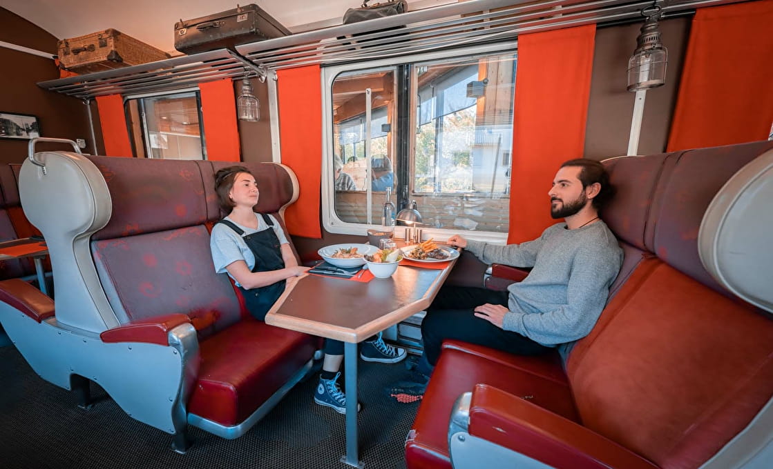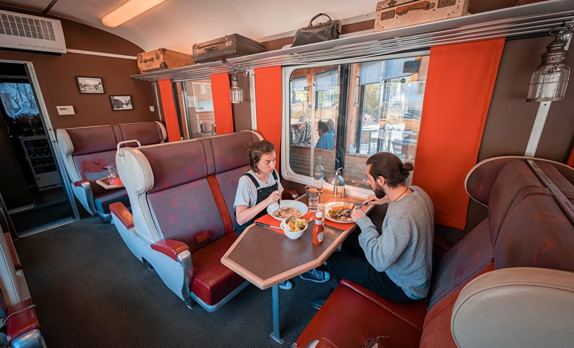 Et si la voiture reste à quai, les convives voyagent par la pensée et surtout par leur palais. Un établissement insolite qui ne peut que transporter les amateurs de bonne chère.