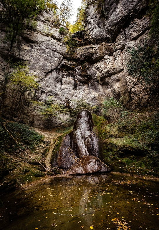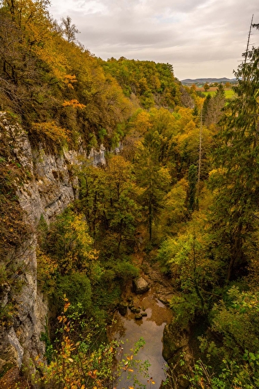Elle permet d’embrasser un époustouflant panorama depuis un joli belvédère. Parmi les points d’intérêt remarquables, une cascade, le village de Saint-Christophe et son prieuré, ainsi que le village de La Tour-du-Meix où subsistent les vestiges d’un château dévoré par la végétation.