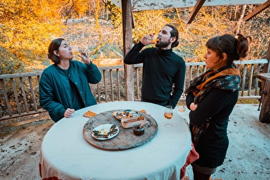 - une table d’hôte où sont préparés des produits de la ferme issus de l’agriculture biologique et de saison (y compris au petit déjeuner),