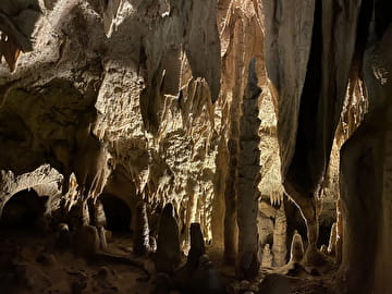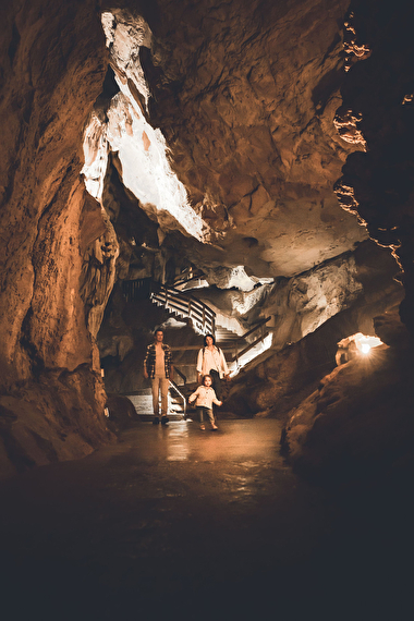 Au menu de la visite : stalactites, stalagmites mais aussi une rivière et un lac souterrains. Fermée en hiver pour cause d’inondation, la grotte devient alors le refuge des chauves-souris.