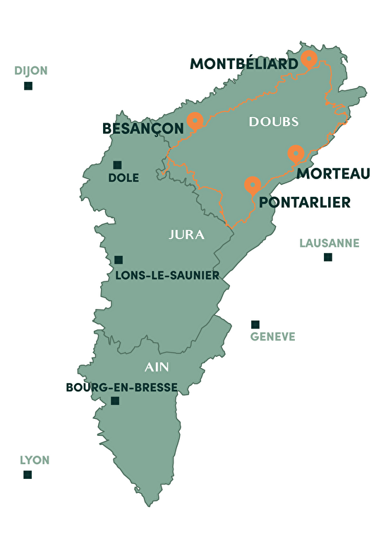 L'avantage du Grand Tour du Doubs à vélo c'est qu'il est possible de la débuter à n'importe quel endroit. Ici, nous vous proposons un départ depuis Montbéliard pour une étape à la fois sportive et culturelle. Forêt, montagnes, alpages, rivières, lacs, cités de caractère, grands espaces, sites culturels et architecture typique.. Le Grand Tour du Doubs vous réserve de belles surprises tout au long de votre itinéraire de 384 km.