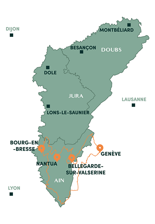 C’est un concentré de la montagne de l’Ain qui vous attend avec ses trésors naturels farouchement protégés comme réserve Naturelle du Marais de Lavours ou la Vallée de la Valserine, son mythique col de la Faucille, ses vastes espaces comme le plateau du Retord ou ses coteaux du Bugey avec vue sur le Grand Colombier.