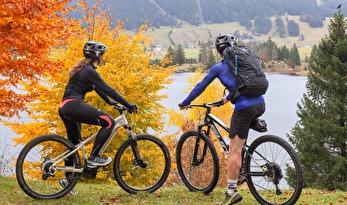 Parcourez la magnifique "Route des lacs" en VTT grâce au Jurassic Vélo Tour ! Plus de 40 parcours vous attendent au fil de l'eau et une application est disponible pour vous guider !