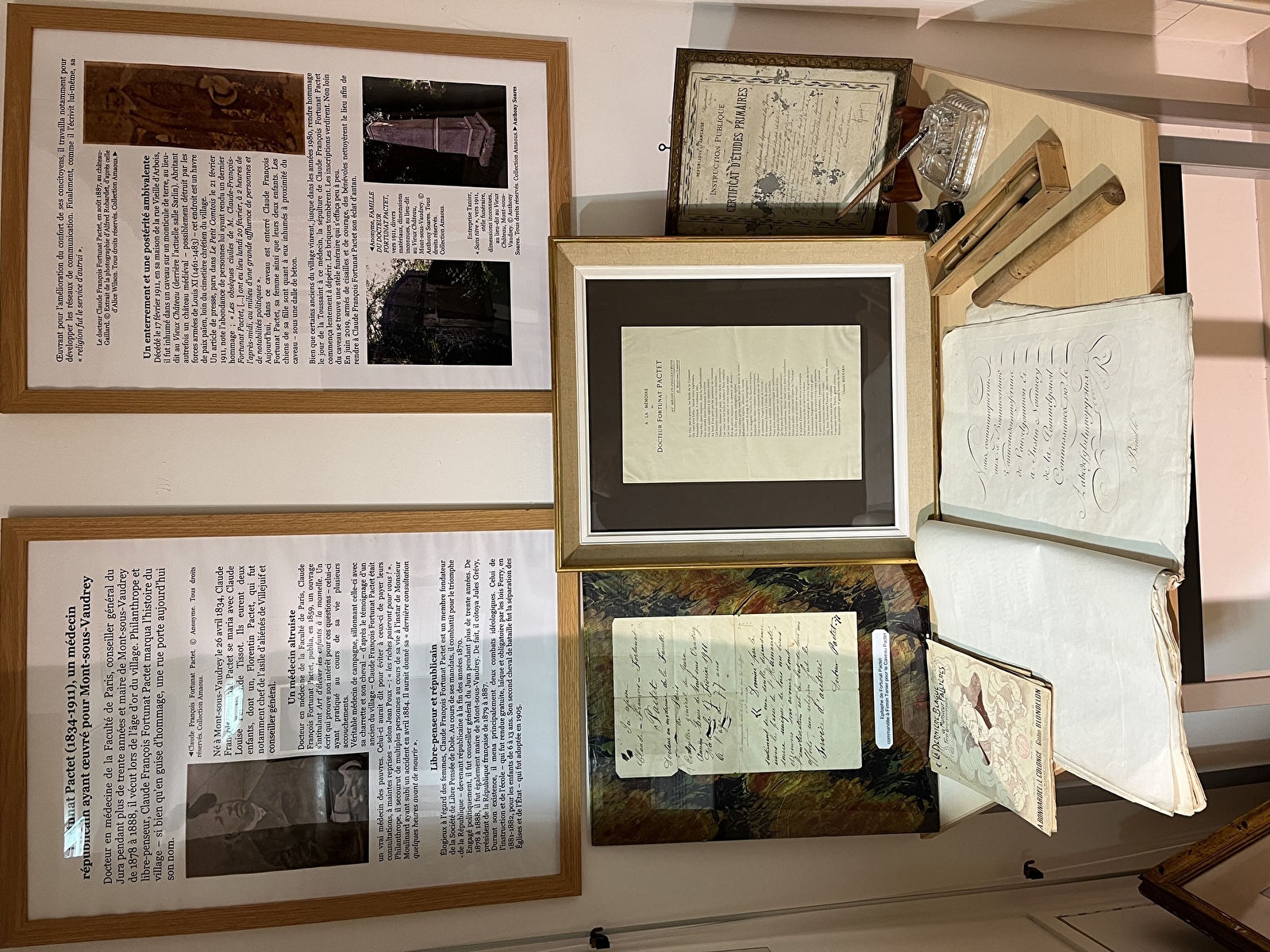 Située au premier étage de la mairie de Mont-sous-Vaudrey, la salle du patrimoine est accessible toute l'année aux horaires d'ouverture de la Mairie.