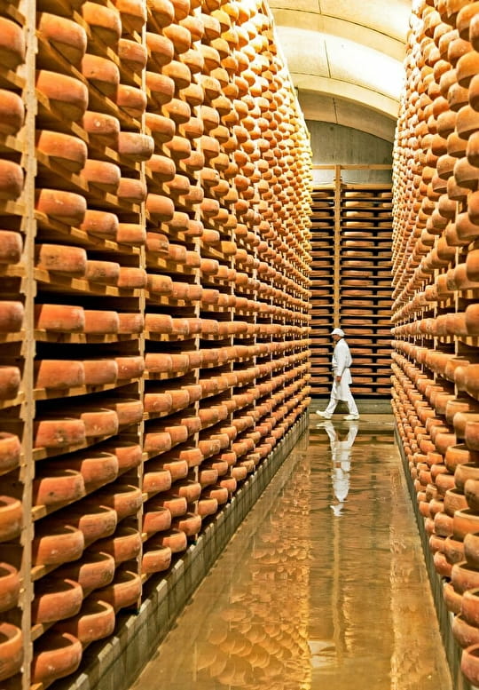 Laissez-vous impressionner par les murs d'étagères à Comté du sol au plafond qui courrent sur des mètres et des mètres et profitez de cette visite passionnante dans des lieux atypiques tels que d'anciens sites défensifs de l'époque du Roi Soleil !
