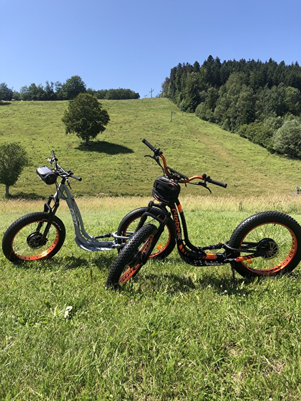 Location de 7 trottinettes et de 3 swincars (1 monoplace et 2 tandems) praticables toute l'année sur un circuit dédié sur la station des Plans d'Hotonnes ou en randonnée accompagnée.