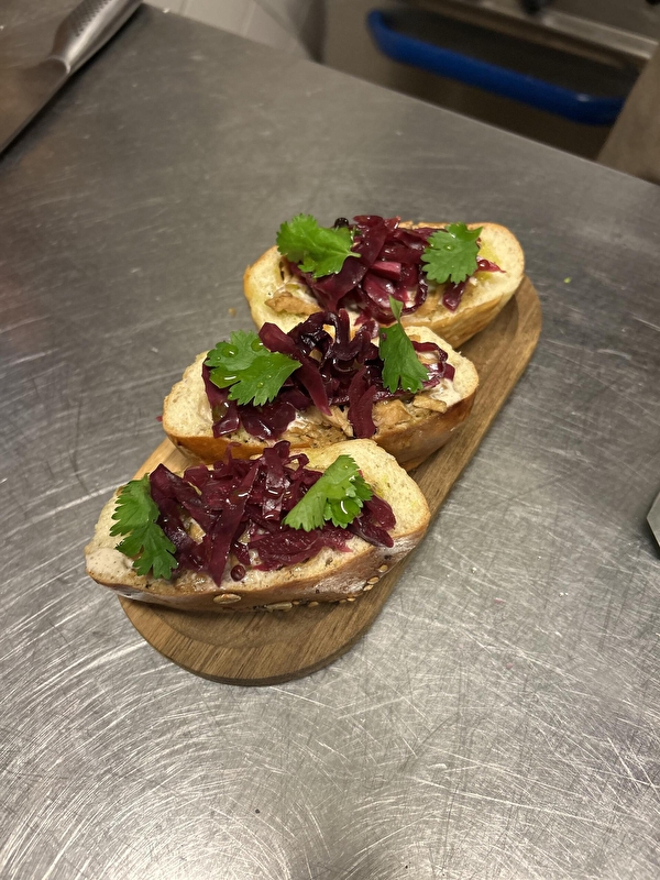 Chez Bidule, pas de carte figée : chaque jour, un menu du jour et quelques suggestions laissent place à l’inspiration du chef. Même en venant régulièrement, vous ne mangerez jamais la même chose !