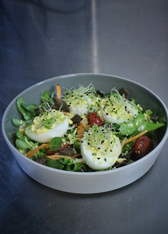 Le chef, Joris, propose une cuisine maison, généreuse et authentique, valorisant les produits du terroir, notamment les produits Saveurs de l’Ain.
