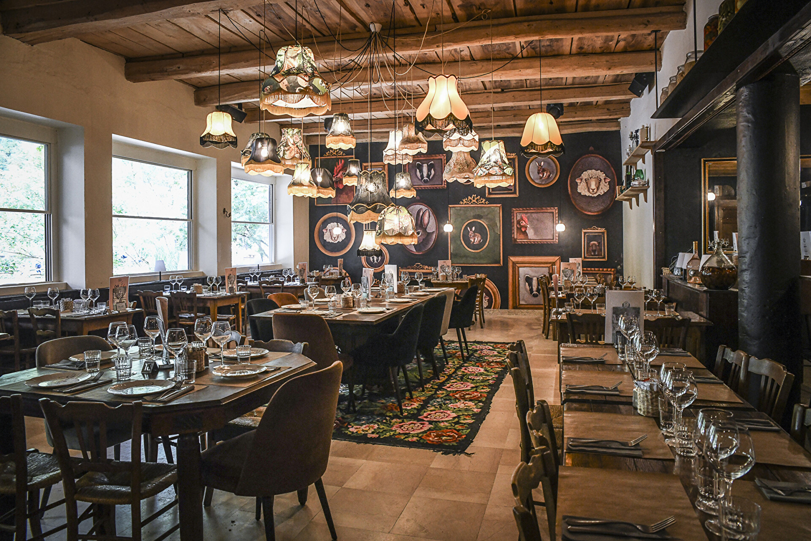 Découvrez notre espace intérieur principal pouvant accueillir jusqu'à 130 personnes, idéal pour des événements festifs et mémorables. Profitez également de notre charmante petite salle bistrot, située près du bar : le cadre parfait pour des soirées conviviales.
