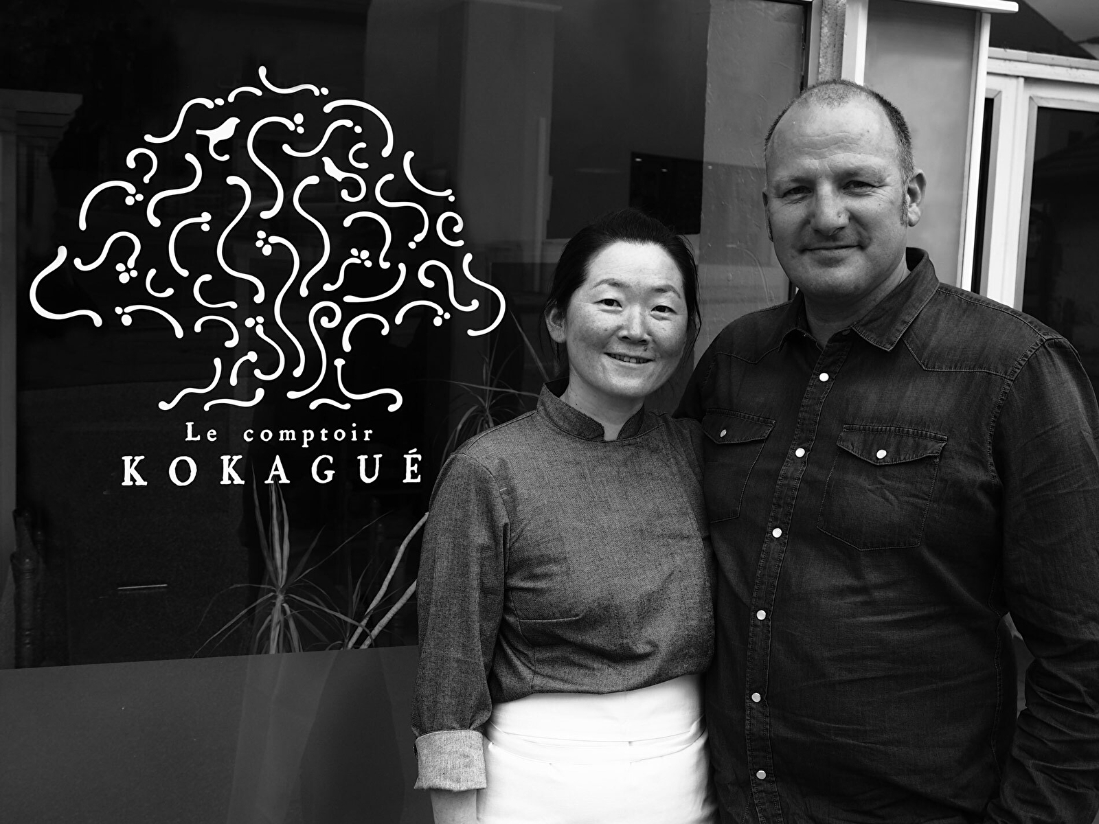 Le Comptoir Kokagué (l’ombre de l’arbre en japonais) est un hommage aux traditions culinaires de la famille de Chiaki. Sa cuisine revisite les plats que ses grands-parents et sa mère lui préparaient lorsqu’elle était enfant. Elle élabore des plats travaillés à base de légumes de saisons, de poissons frais tout juste débarqué de l’atlantique, de viandes issues des producteurs locaux, d’aromates japonais que Raoul cultive à Cramans… Sa cuisine éveille les sens et vous fera voyager au pays du Soleil-Levant.