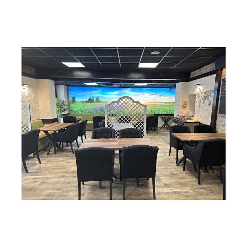 On s'y retrouve pour déjeuner ou dîner dans la grande salle, ou pour siroter un verre et partager une planche apéro autour du bar. Aux beaux jours, on profite de la belle terrasse face à la place Courbet.