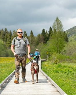 Premier office de tourisme labellisé "Qualidog", le Haut-Bugey s'engage : lacs accessibles aux chiens, itinéraires nature recommandés, liste des établissements "dog-friendly", "toutoubars", carnet de vacances remis aux propriétaires d’animaux…