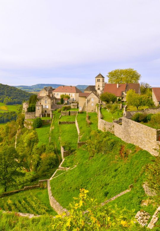 La seule bonne raison de quitter Baume-les-Messieurs se trouve à quelques kilomètres sur un éperon rocheux. Château-Chalon, ses jardins en terrasse, sa vue époustouflante sur la plaine et ses ruelles pittoresques.