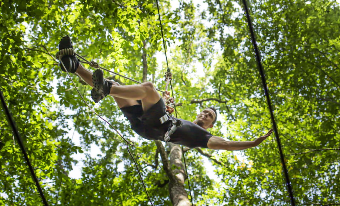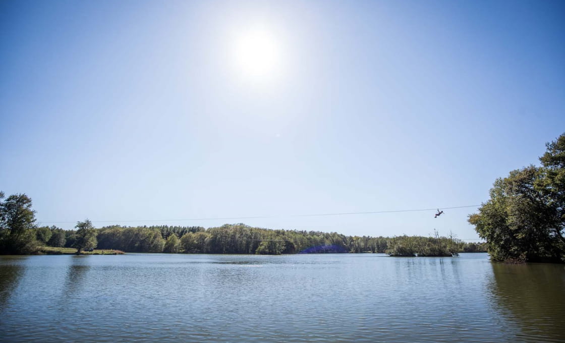 Tyrolienne géante traversant l’étang de la Grange du Pin