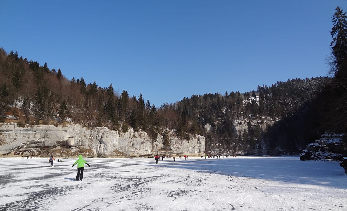 Lorsque les bassins du Doubs, à Villers-le-Lac, et plus précisément à Chaillexon, sont pris dans la glace, c'est tous les environs qui semblent figés, tellement le spectacle est impressionnant. Et c'est le résultat des températures extrêmes qui peuvent descendre à -10°C voire -15°C. Il arrive parfois que le Saut du Doubs soit également pris dans la glace : la chute d'eau de 27 mètres se fige sous les yeux des courageux ébahis. Pour les plus téméraires, rendez-vous à La Brévine, aussi appelée la petite Sibérie suisse, située à quelques kilomètres de là, pour patiner sur le lac des Taillères.