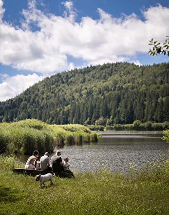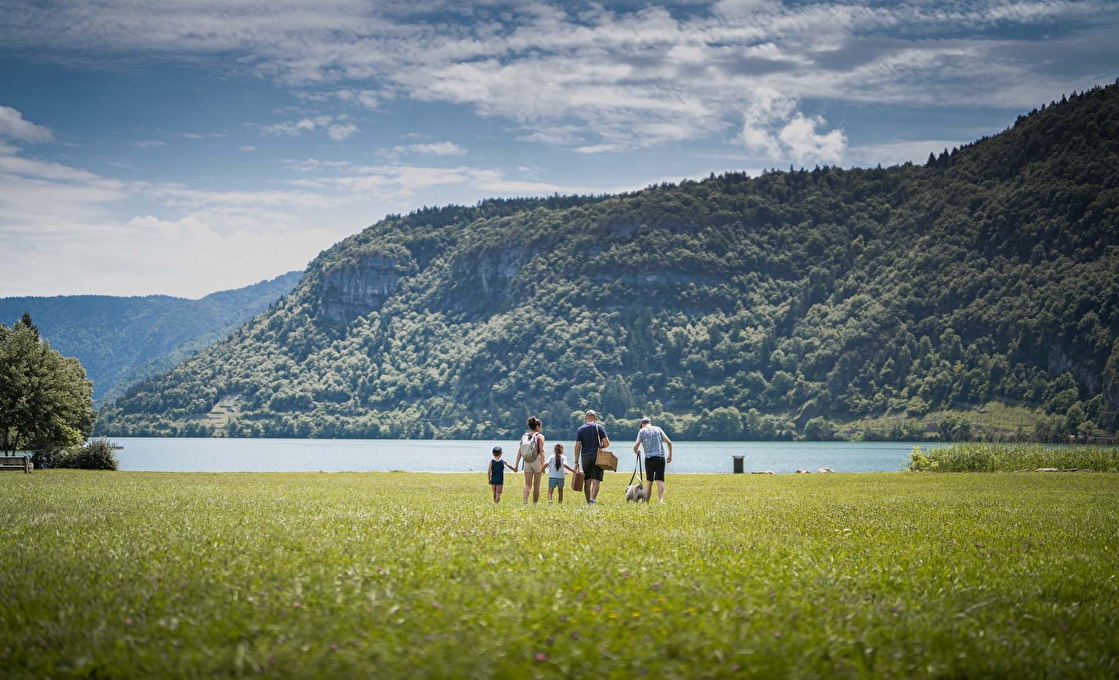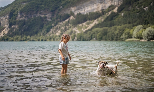 De retour sur la terre ferme, jetez-vous à l'eau tous ensemble ! Le lac de Nantua étant autorisé aux chiens, le jeu du lancer de bâton occupera toute la famille, pieds et pattes dans l’eau.