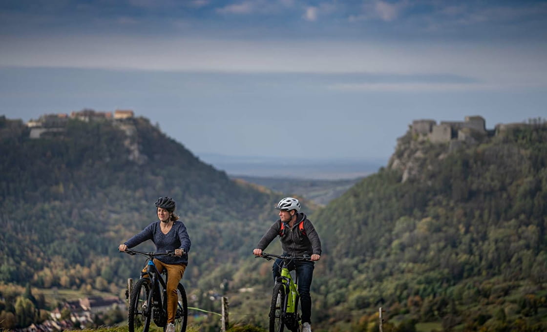 Sortie vélo autour de Salins avec en arrière plan les forts Belin et Saint-André