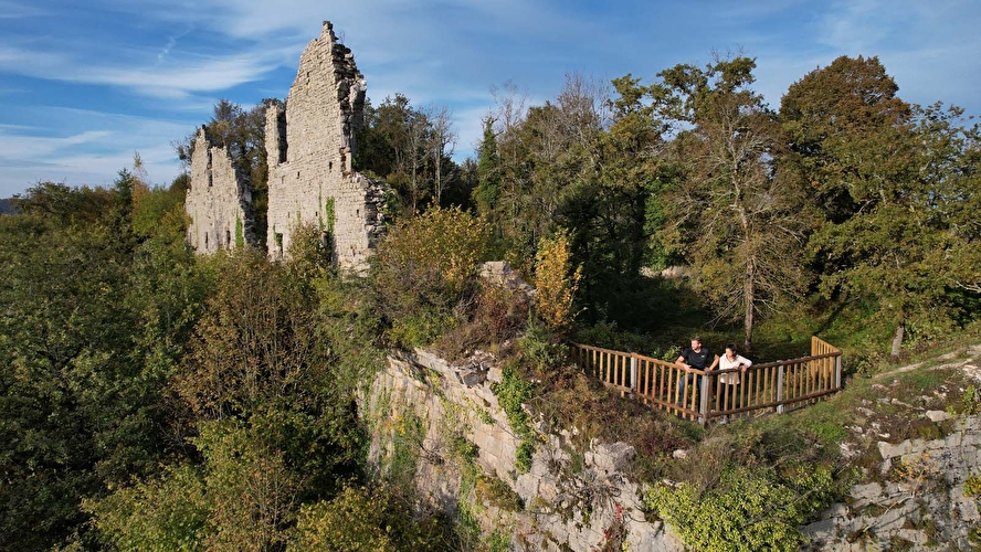 Partez pour une randonnée de 11 km et 180 m de dénivelé (départ au camping du Surchauffant) ! Ce sentier traverse des forêts, des ruines médiévales et longe des falaises offrant des panoramas époustouflants.