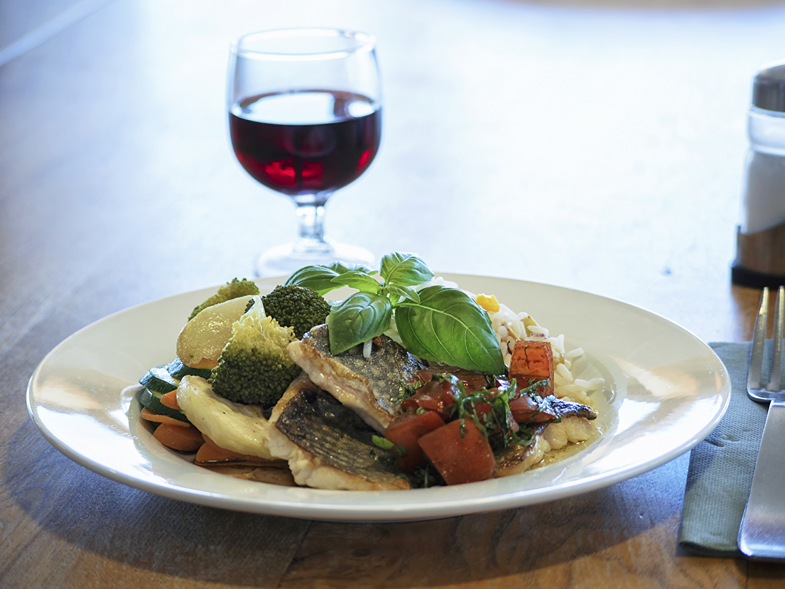 La pension complète avec vin de table compris à chaque repas et café les midis, spécialités jurassiennes et produits bio au menu, du jour 1 pour le dîner au jour 8 pour le petit déjeuner.