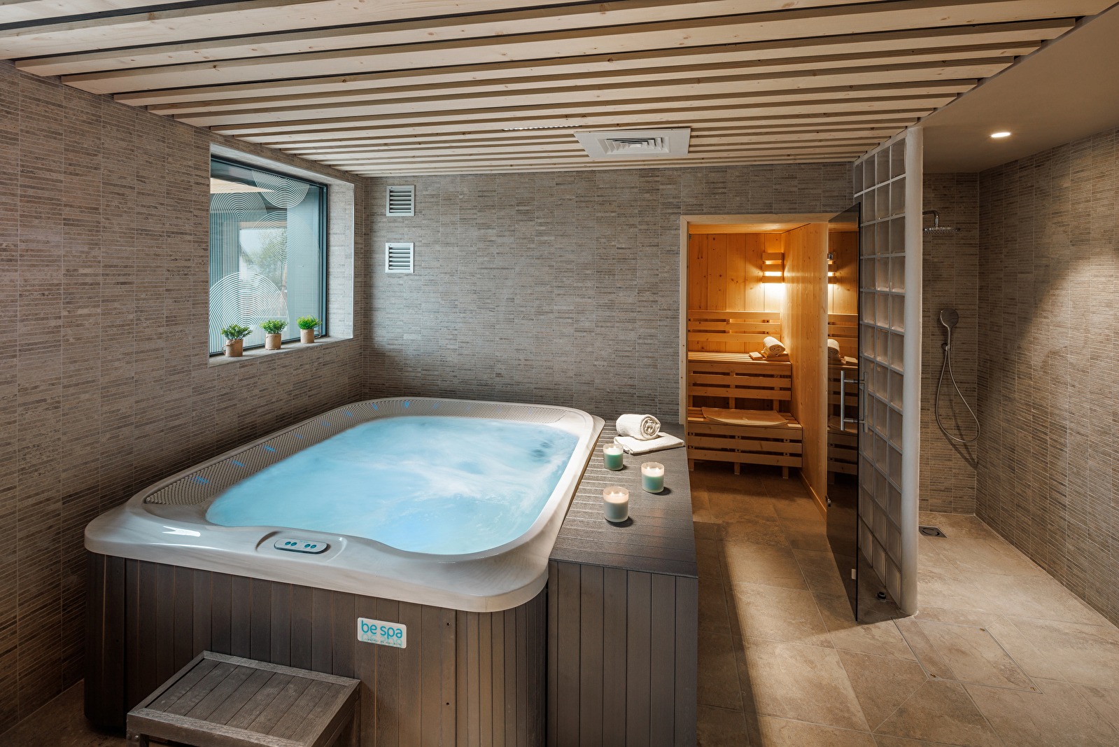 L'accès à l'espace bien-être avec piscine naturelle intérieure, spa, sauna, salle de fitness et massage (en supplément).