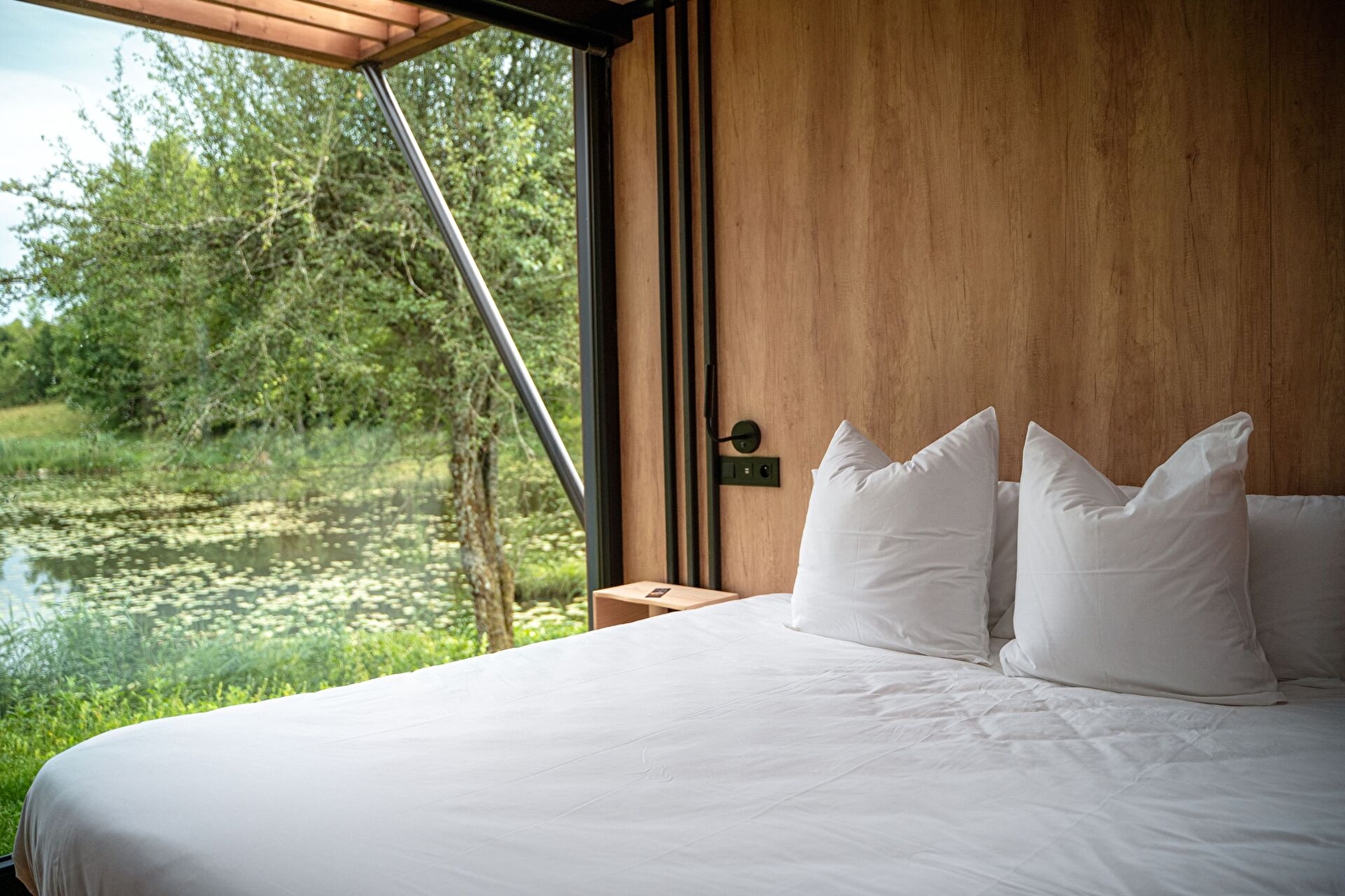 Pour ce nouveau domaine, Bleu Minuit s'installe dans l'Ain avec de nouveaux hébergements sur l'eau, dont l'architecture est un clin d'oeil aux bateaux de plaisance. Posés sur la rive du Grand Etang du Genevray, ces nouveaux lodges accueillent leurs passagers pour un voyage sensoriel vers d'autres horizons...