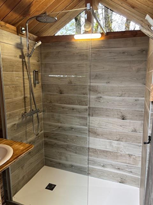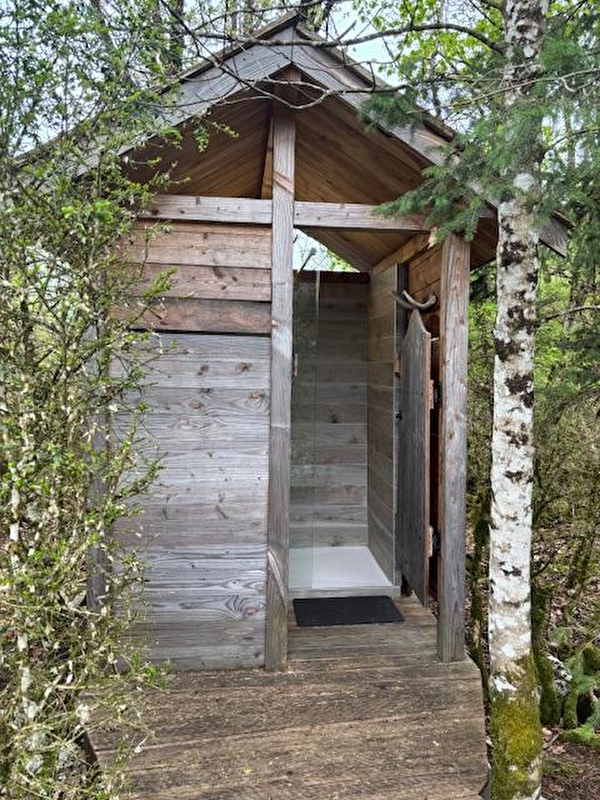 Des toilettes sèches et un point d'eau sur le plate-forme complètent une salle de bain, avec douche et WC, mise à votre disposition durant votre séjour (draps de bain et gel douche fournis).