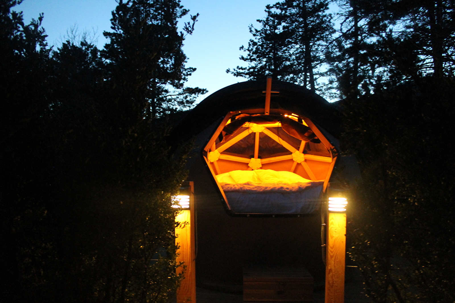Le dodôme étoilé combine l’esthétisme du dôme géodésique et l’effet bulle du wigwam. Une ouverture en pvc cristal prévue pour observer la nature et à la nuit tombée, contempler le ciel étoilé.