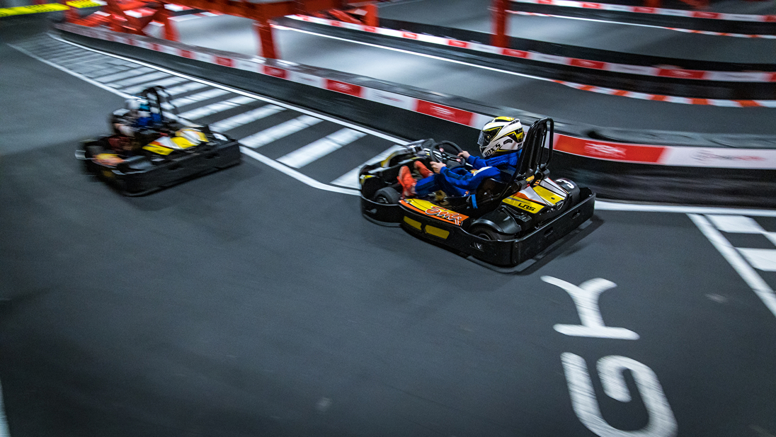 Complexe de loisirs indoor avec circuit de karting, bowling, billards, espace de réalité virtuelle (VR) et escape game Prison Island.