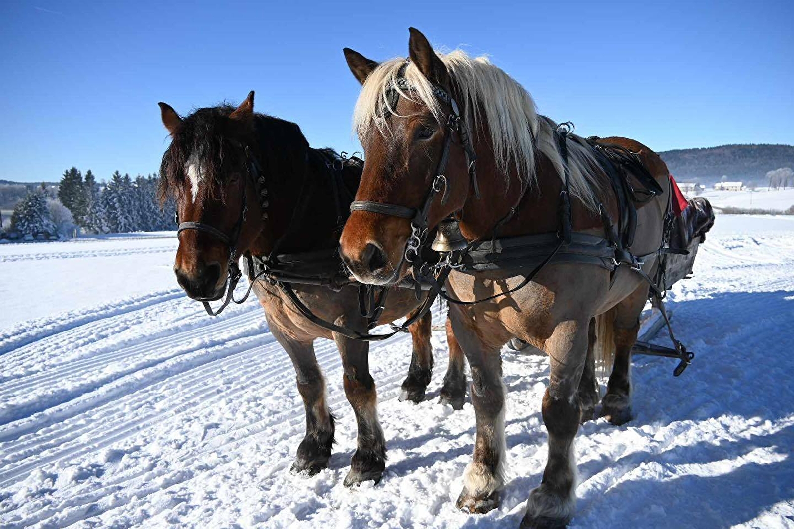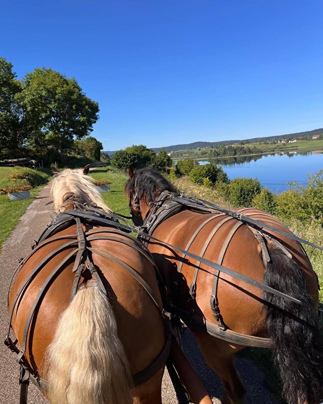 Venez découvrir le Grandvaux et ses richesses naturelles attelés avec des chevaux comtois.