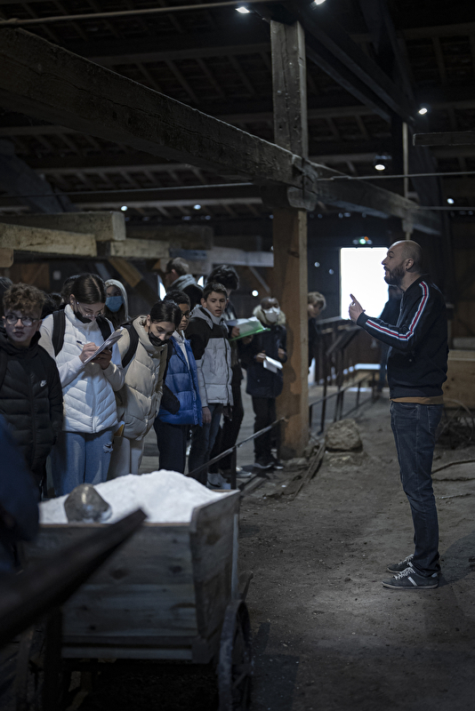 Grande Saline : au fil de la visite, le médiateur fait voyager les élèves dans l’histoire et l’architecture d’un site exceptionnel inscrit à l'UNESCO pour découvrir 1200 ans de production de sel. En 4 étapes, les élèves découvrent la formation du sel dans le Jura, les 2 puits d'extraction d'eau salée avec l'évolution des techniques de pompage du Moyen Age jusqu'à la Révolution industrielle, observent un objet technique réel (roue et pompe) pour comprendre comment une machine aide l'homme, et parcourent la salle d'évaporation où était obtenu le sel ignigène.