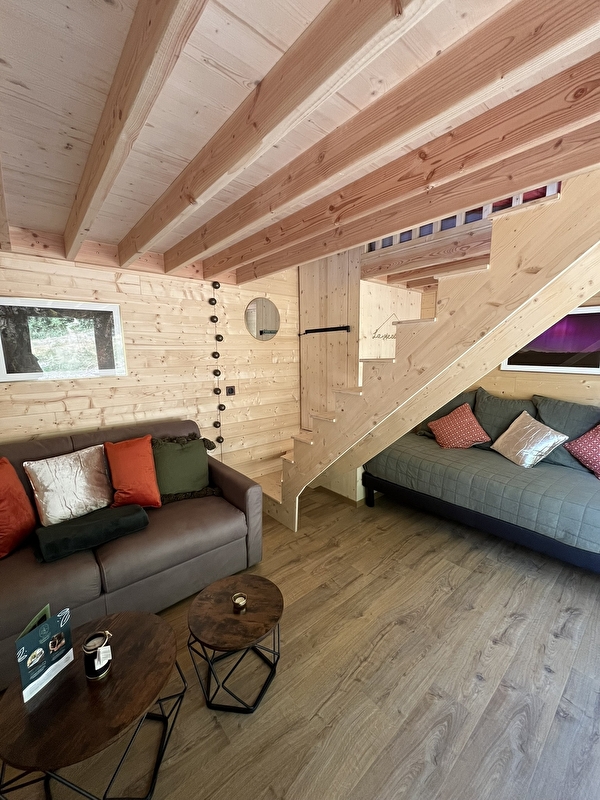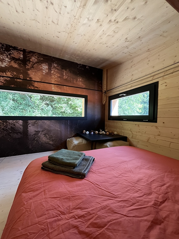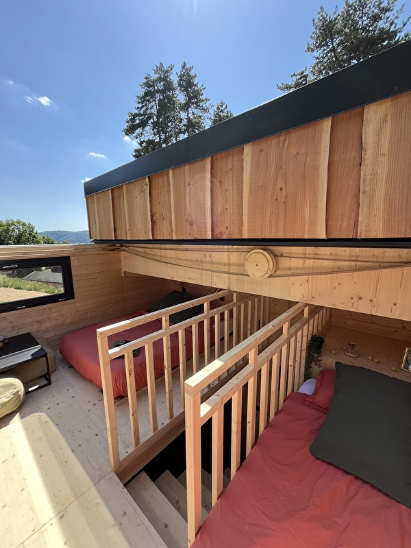 À l’aide de cordes et d’une poulie, procédez vous-même à l’ouverture du toit ouvrant sur le ciel et profitez d’un instant hors du temps en écoutant le vent dans les branches et en regardant les étoiles filées… depuis le confort de votre lit douillet ! Venez rivaliser avec les habitants du « Nid Étoilé d’Augustine », ouvrez votre cœur d’enfant à la magie, et comptez…