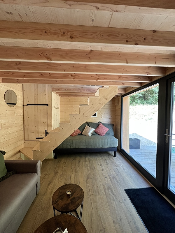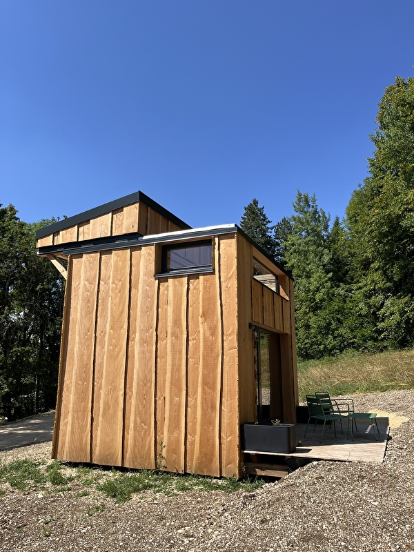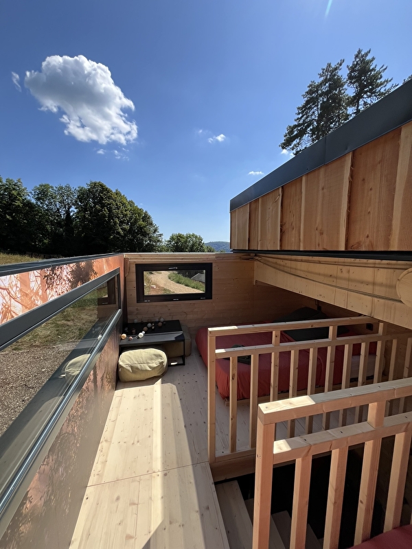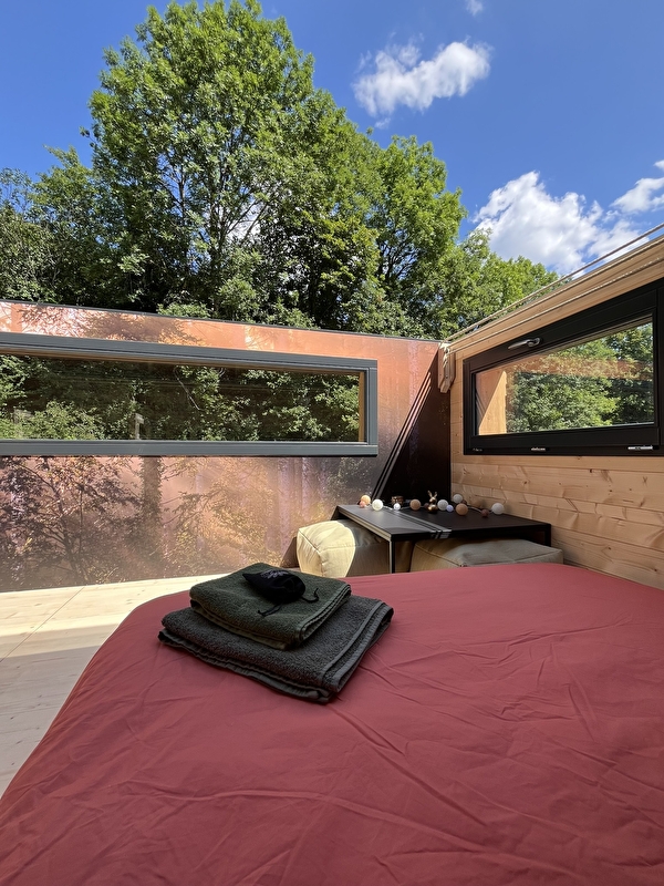 Et après une douche réconfortante sous la Petite Yourte du Bois des 5 privée "rien qu'à vous" (située à une vingtaine de mètres), vous pourrez déguster votre plat face au soleil couchant dans votre logement avec le toit ouvert. Et finir par exemple, une tisane à la main et un plaid sur les genoux, face à la baie vitrée du rez-de-chaussée en contemplant la nature.