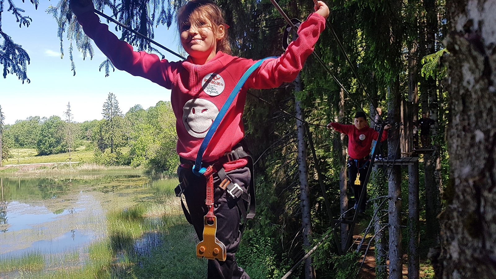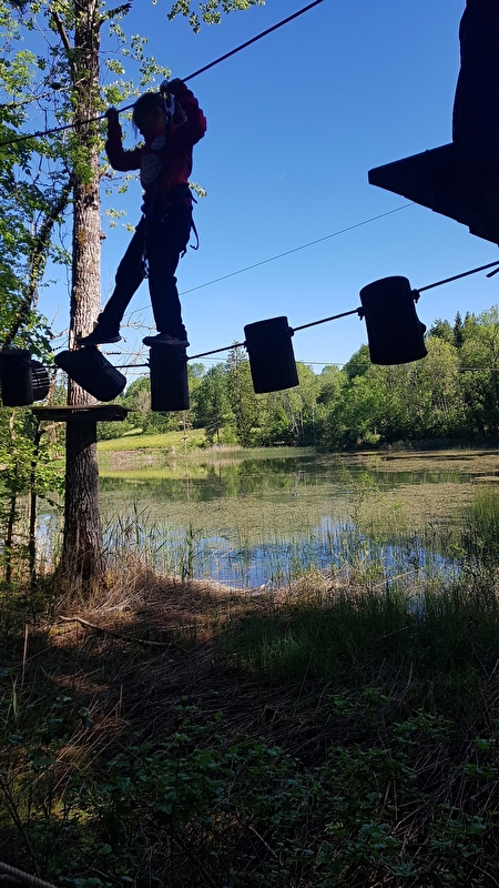 Profitez de l'accrobranche avec ses 9 parcours dans les arbres adaptés pour toute la famille, à partir de 2 ans. 150 jeux uniques et originaux dont les fameuses tyroliennes géantes qui survolent l'étang. Laissez vous surprendre par des jeux jamais vu ailleurs comme un vélo, skate, kayak, kart, surf, skis, luge... et autre tyrolienne double, le tout perché jusqu'à plus de 20m de hauteur.