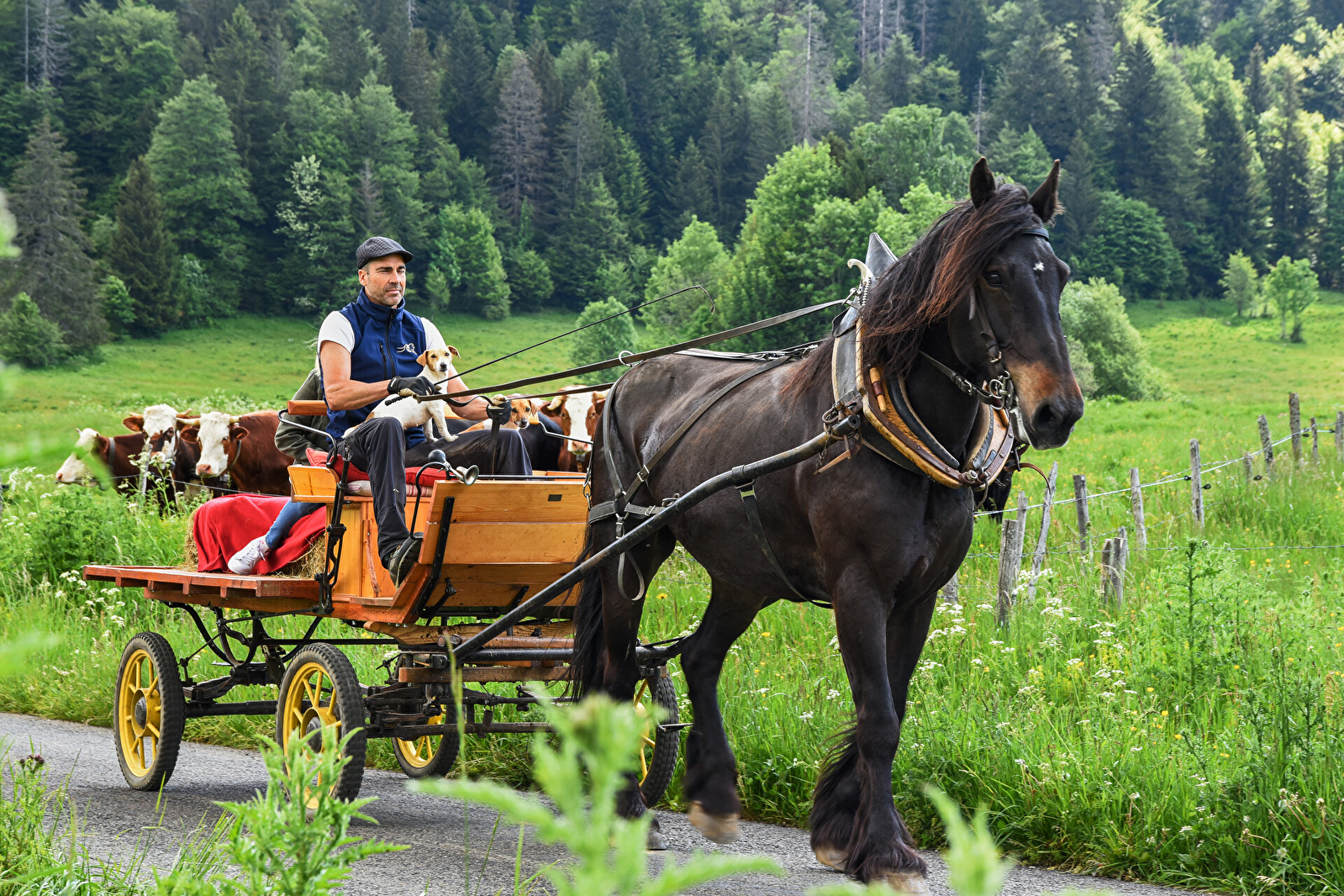 De merveilleux paysages défileront sous vos yeux aux trois allures du cheval selon la météo. Nicolas vous dévoilera les secrets de la faune et la flore du Haut-Jura qui vous entourent. Une boisson pourra être dégustée lors de la Rando du soir sur la calèche.