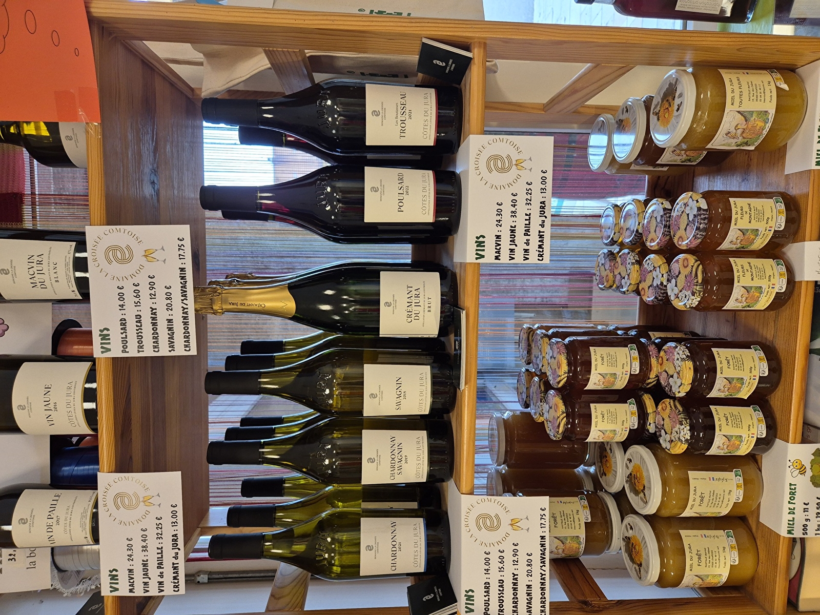 De nombreux produits du terroir à découvrir sur place : Comté AOP de différents affinages, Morbier au lait cru AOP, bleu de Gex AOP, raclette au lait cru, Mont d’Or AOP en hiver, beurre de Nozeroy, vin, miel…