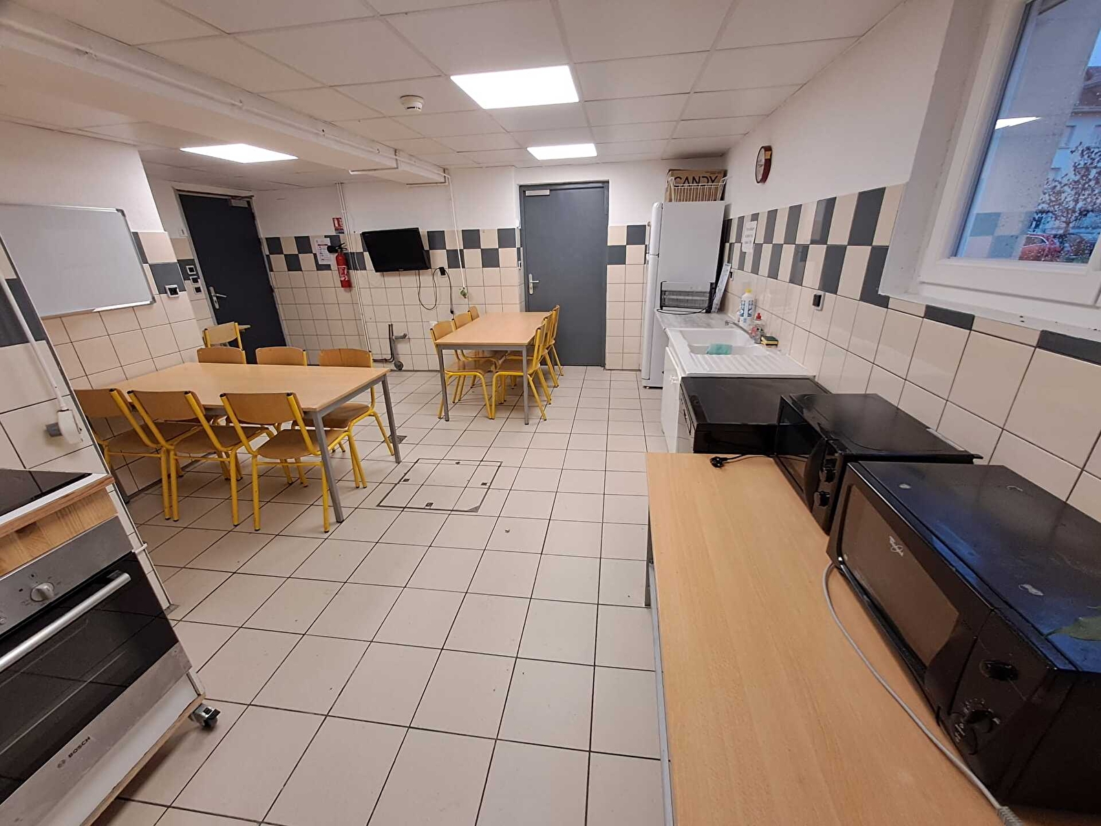- Une cuisine familiale (1 plaque de cuisson, 1 four, 1 lave-vaisselle et 1 réfrigérateur)
